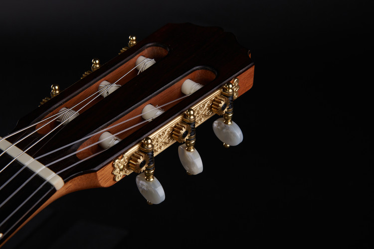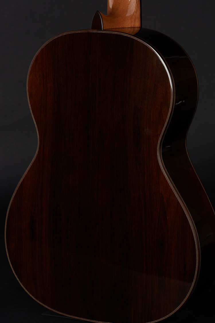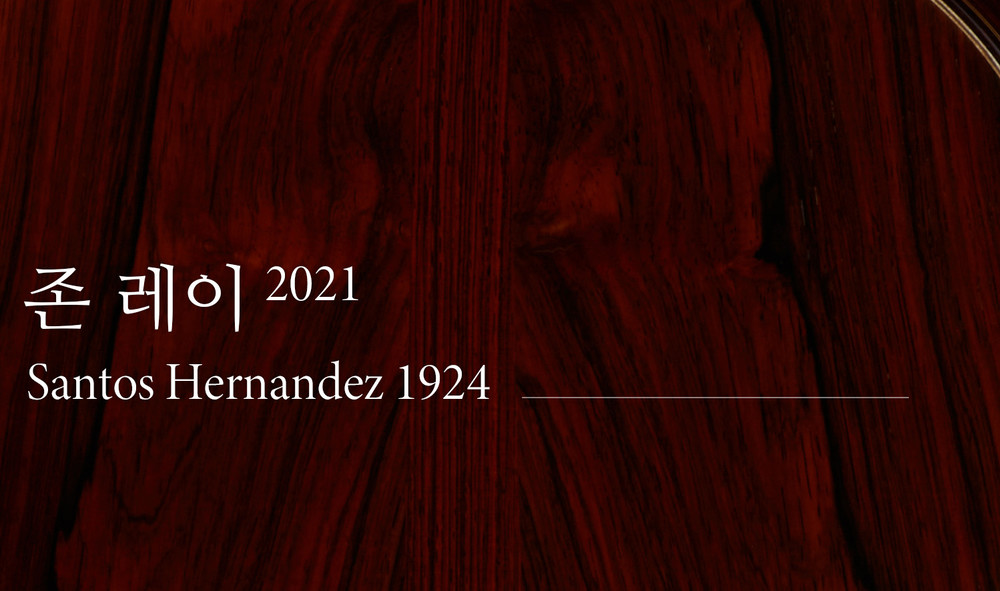 스페인 기타에서 가장 중요한 제작가 중 한 명인 산토스 헤르난데즈 1924년 작품을 복원한 기타입니다. 비교적 가벼운 무게감과 깊고 따듯한 음색을 지니고 있습니다. 명확한 분리도, 한음 한음 밀도감과 힘있는 소리는 전통적인 스페인 악기의 특징을 잘 담아냈습니다.