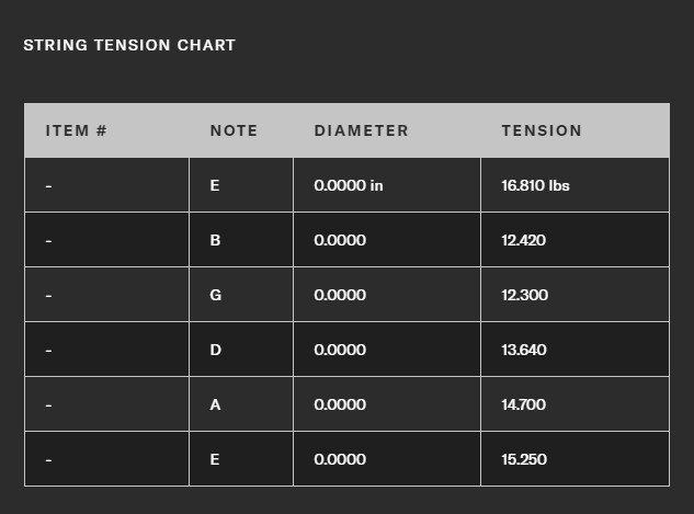 Pro-Arté Clear Nylon 플라멩코 텐션 차트
